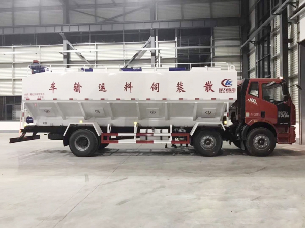 同時它也可用來運輸某些無腐蝕性粉粒狀原料,如制藥廠粉料和糧庫周轉。散裝飼料車的飼料罐架設在卡車的底盤上,
