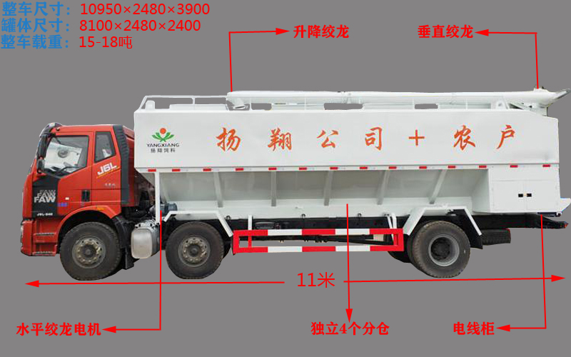 2.絞龍電機均采用國產優質電機,在粉塵、雨林、腐蝕性消毒水、惡劣的行駛環境下,保證散裝飼料車的良好運行。