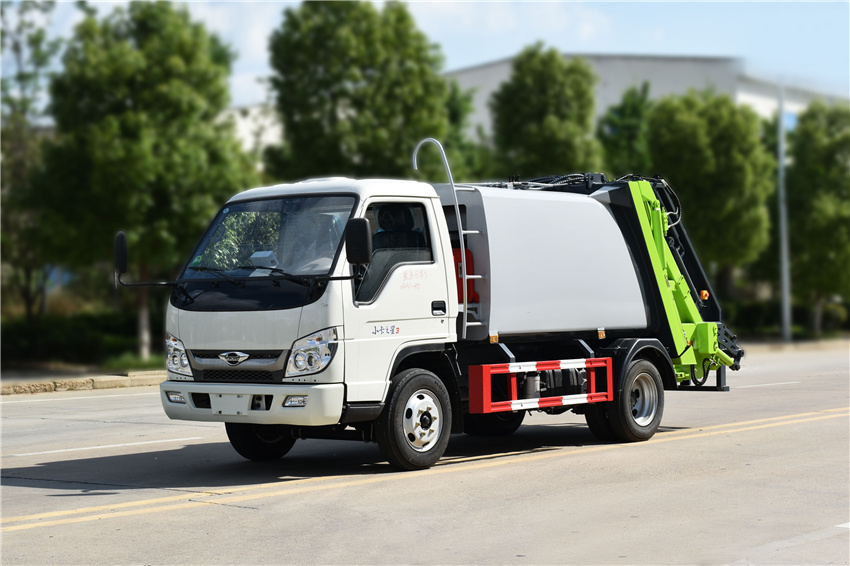 福田壓縮垃圾車,壓縮對接式垃圾車,領航壓縮垃圾車,壓縮垃圾站,藍牌壓縮車,京牌6方壓縮車,該車專用裝置為垃圾箱體及液壓系統裝置,主要用于垃圾的收集,轉運作業.側防護材料為:Q235碳鋼,連接方式為:螺栓連接,后部防護為專用裝置代替,后部防護離地高度(mm):410.選裝無上料裝置時無后伸,選裝密封斗裝置,翻桶裝置,擺臂裝時,后伸280mm;選裝翻斗裝置時,后伸380mm.ABS系統控制方式為4S/4M,氣剎:ABS型號為CM4XL-4S/4M,生產廠家為廣州瑞立科密汽車電子股份有限公司.液剎:ABS型號為CM4YL,生產廠家為廣州瑞立科密汽車電子股份有限公司.發動機/油耗申報值為(L/100km):Q23-115E60/11.12,Q23-115C60/11.31.該車選裝直接供電式ETC車載裝置.該車型整備質量包含隨車工具,不含備胎.貨箱質量為1750kg,貨箱材質為T700,側板和頂板厚度為2.5mm;底板厚度為3mm.選裝貨箱側面樣式.后部作業燈具僅在車輛作業時開啟,行駛過程中不可開啟.整車長度/后懸/后伸對應關系(mm):5995/1735/280,5995/1635/380,5830/1850/0.隨底盤選裝新前格柵及新logo,選裝新前圍.選裝油箱電瓶安裝位置.