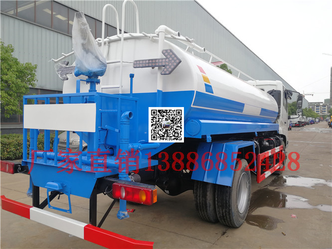 灑水車前裝有鴨嘴形噴嘴或圓錐形沖嘴,后面裝有圓柱形灑水噴嘴或蓮蓬頭噴嘴,后部有工作平臺(tái),裝配有水炮。后還可裝8個(gè)噴嘴。