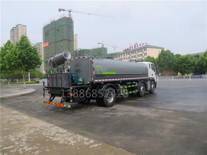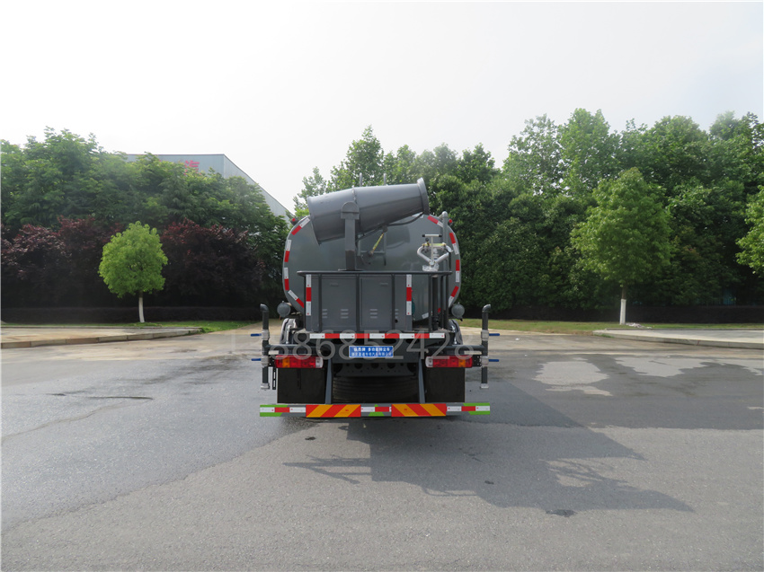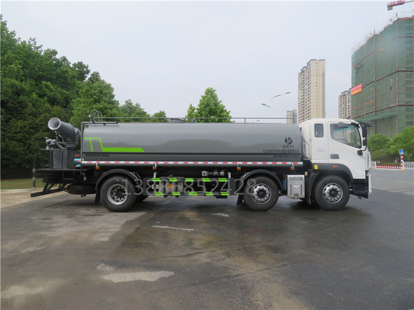 該車用途為抑塵降霾,主要裝置為罐體及噴霧裝置;罐體有效容積:18.9立方米,罐體外形尺寸(×長軸×短軸)(mm):6700×2450×1580;側、后防護材料均為:Q235碳鋼,連接方式均為:螺栓連接,后部防護截面尺寸(mm):120×50,后部防護離地高度(mm):480;ABS系統型號/生產企業對應關系:CM4XL-4S/4M,廣州瑞立科密汽車電子股份有限公司.采用底盤2100+4200軸距(mm)。選裝噴霧裝置樣式。
