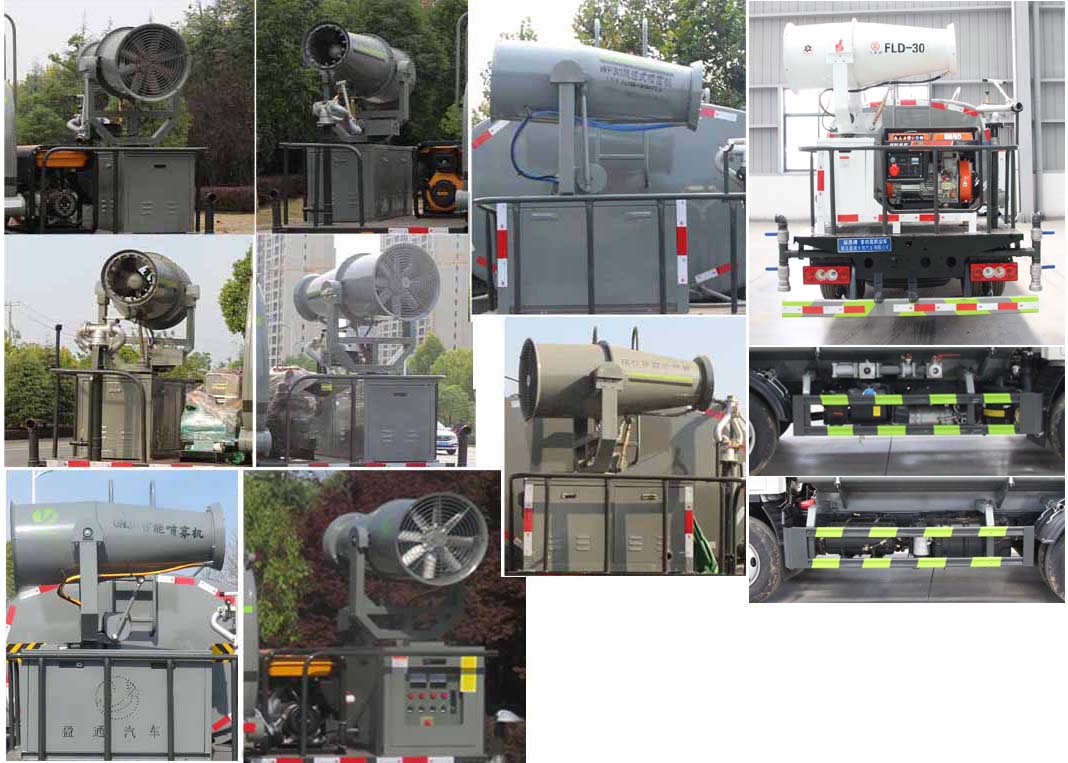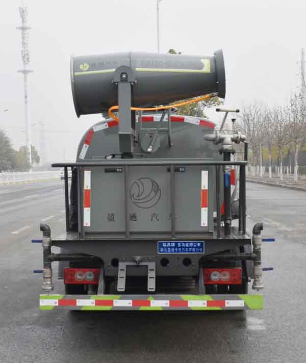 該車用途為抑塵降霾.主要裝置為罐體及噴霧裝置;罐體總容積:1.59立方米,罐體有效容積:1.57立方米;罐體外形尺寸(×長軸×短軸)(mm):2800×1650×1150;ABS系統控制方式為4S/4M,ABS型號為CM4XL-4S/4M,生產廠家為廣州瑞立科密汽車電子股份有限公司;側、后防護材料均為:Q235碳鋼,連接方式均為:螺栓連接,后部防護截面尺寸(mm):120×50,后部防護離地高度(mm):360.隨底盤選裝駕駛室,選裝噴霧裝置樣式,選裝后部樣式。選裝油箱電瓶安裝位置。