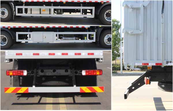 該車專用裝置為箱體、液壓控制系統等專用裝置,主要用于實現垃圾的裝載和轉運卸料作業.卸料方式為后卸.車廂頂部封閉,不可開啟.側/后部防護裝置材料:Q235碳鋼,連接方式均為:螺栓連接;后防護截面尺寸120×60mm,后部防護離地高度(mm):460.ABS系統型號/生產企業對應關系:ABS-E/威伯科汽車控制系統(中國)有限公司;ABS/ASR-24V-4S/4M/東科克諾爾商用車制動系統(十堰)有限公司;CM4XL-4S/4M/廣州瑞立科密汽車電子股份有限公司;3550D-1010/東科克諾爾商用車制動系統(十堰)有限公司.該車安裝具有衛星定位功能的行駛記錄儀.發動機型號與油耗值對應關系為(L/100km):B6.2NS6B210/26.00,B6.2NS6B230/26.91,F4.5NS6B190/24.40,D6.7NS6B230/26.80,F4.5NS6B220/24.40.該車可選裝直接供電式ETC車載裝置.僅采用底盤5750mm軸距改裝.隨底盤選裝限速裝置,限速89km/h.該車后軸僅采用鋼板彈簧懸架。 |