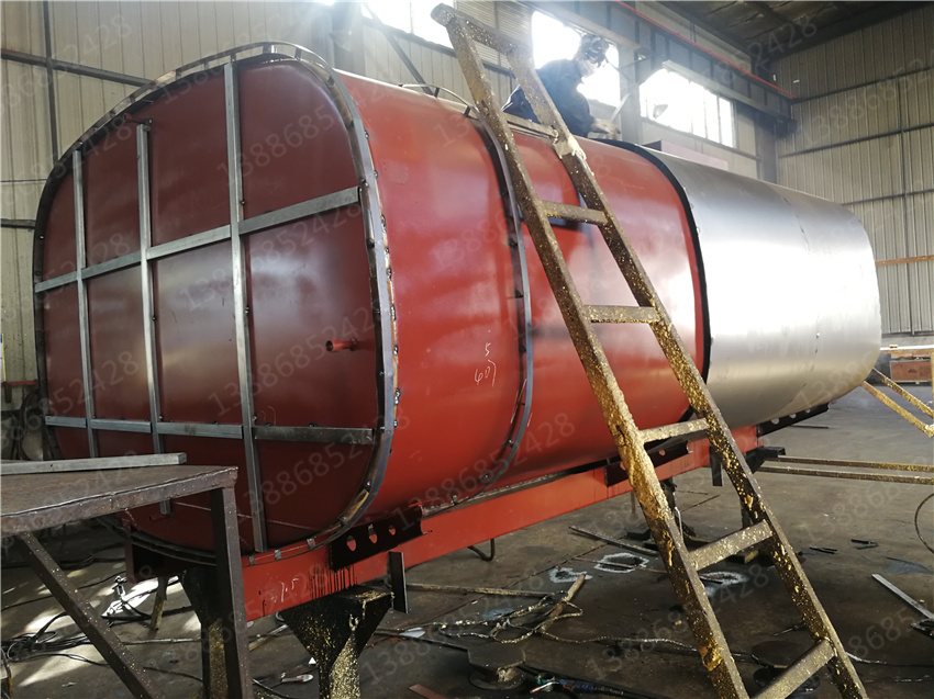 3. 保層溫的制作是在水罐外部另外焊接10mm厚的支撐骨架,然后用保溫材料將骨架內(nèi)部填充滿,**在骨架外蒙上一層外皮。 保溫層外表鐵皮采用8mm厚高強(qiáng)度耐磨板,可選擇使用不銹鋼分鏡面8K或磨砂板