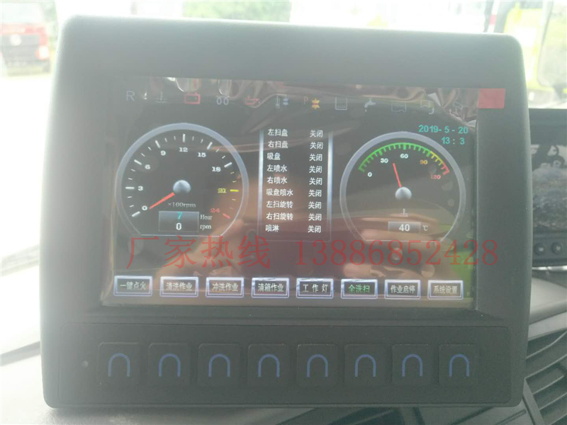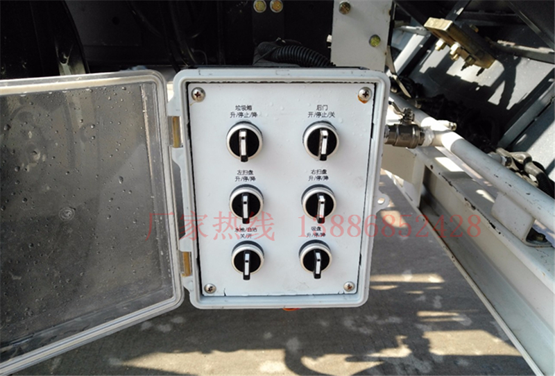 14、左右立掃為單掃盤,減少了掃刷的數量和掃刷消耗量,能降低使用成本。掃刷上加裝噴水裝置,用于噴霧降塵。左右立掃分開控制,可實現右掃和全掃等不同的作業模式。