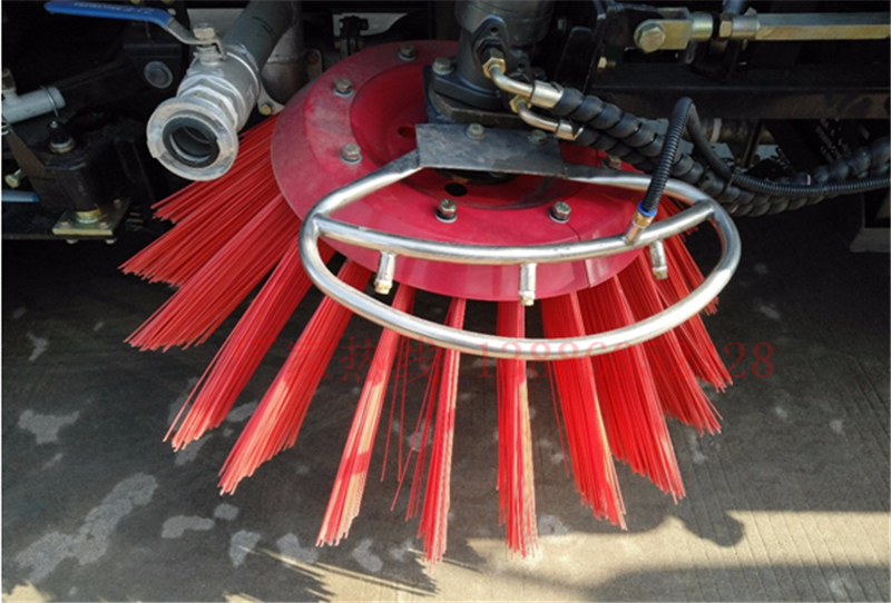 14、左右立掃為單掃盤,減少了掃刷的數(shù)量和掃刷消耗量,能降低使用成本。掃刷上加裝噴水裝置,用于噴霧降塵。左右立掃分開(kāi)控制,可實(shí)現(xiàn)右掃和全掃等不同的作業(yè)模式。