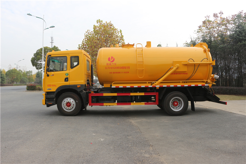 該車用于吸除水坑、下水道里污濁物;主要裝置有罐體及吸污裝置;隨底盤選裝駕駛室,選裝罐體兩側附件樣式及后部樣式;罐體總容量:11.16立方米,罐體有效容積:10.63立方米;罐體外形尺寸(含封頭總長×直徑)(mm):5400×1800,4800×1800;ABS系統生產廠家,型號 :焦作博瑞克控制技術有限公司,J ABS;襄陽東風隆誠機械有限責任公司,ABS/ASR-24V-4S/4M.側、后防護材料均為:Q235碳鋼,連接方式均為:螺栓連接,后部防護截面尺寸(mm):120×50,后部防護離地高度(mm):450.卸料方式:舉升后卸式。采用4500mm,3950mm軸距。隨底盤選裝燃油箱,電瓶,尿素罐,儲氣筒左右安裝位置。選裝限速裝置,限速89.